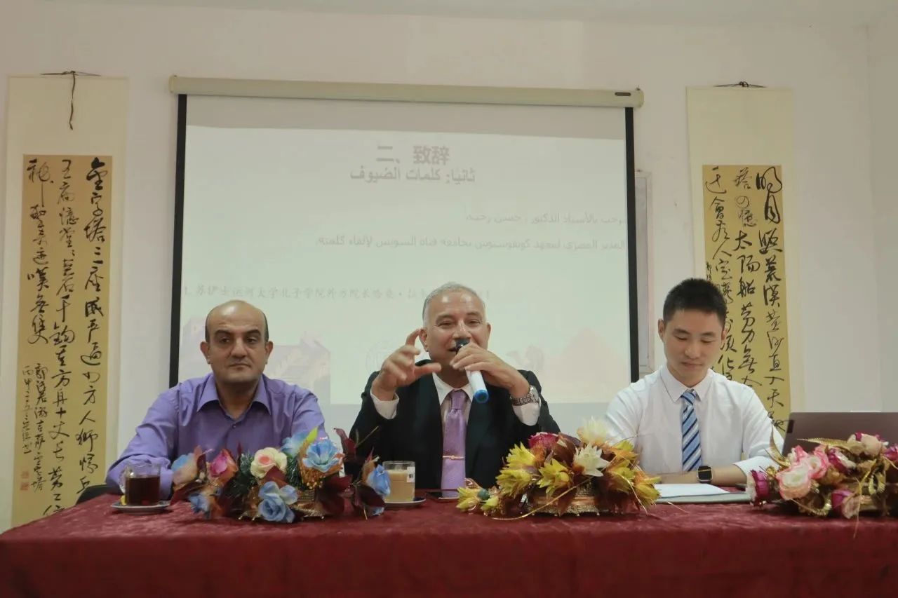 活动伊始,哈桑·拉贾布教授对远道而来的中国学生表示了诚挚的欢迎并分享了自己在中国学习与生活的经历。他怀念道:“在中国,我感到宾至如归。”拉贾布教授还表示,中国和埃及都是文明古国,交往历史源远流长,十分欢迎中国学生的到来,希望同学们能够在伊斯梅利亚度过愉快而充实的四个月。