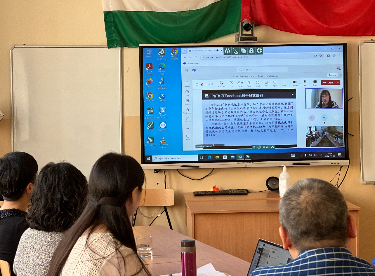 罗兰大学孔院中文教师刘明在平行论坛中以“海外社交媒体文化账号运营与研究”为题,分享了可以获取中文学习资讯、了解中国文化的资源平台,为匈牙利师生进一步理解有内涵、有温度、有趣的中国当代文化故事提供了新视角。